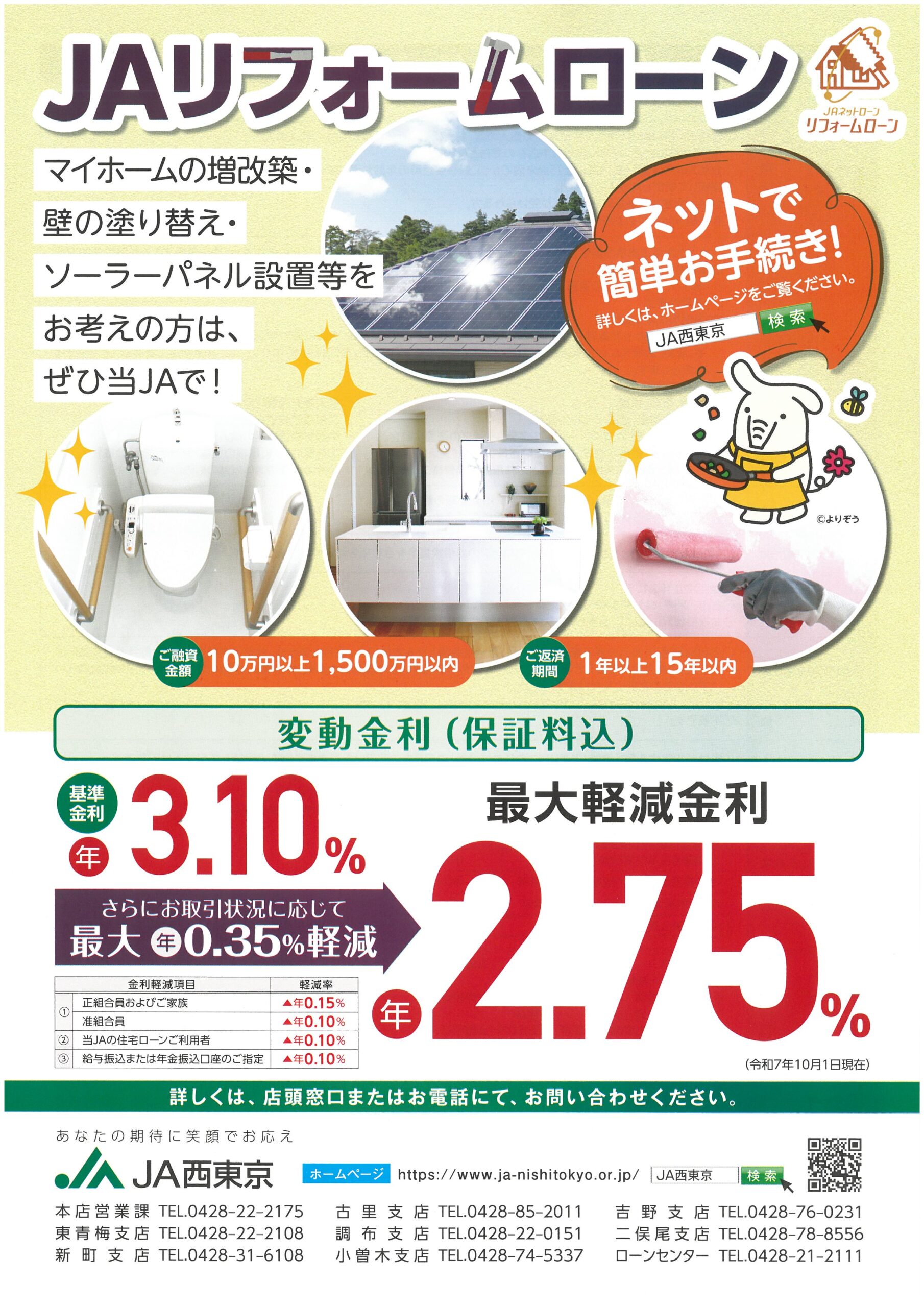 | 変動金利(住宅ローンプライムレート・保証料込) | 2.750%〜3.100% |