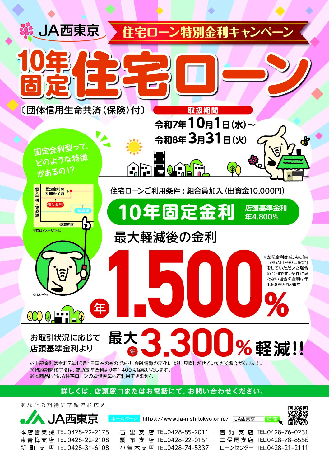 住宅ローン特別金利キャンペーン開始 令和7年10月1日~